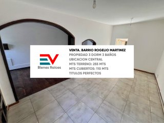 PROPIEDAD EN VENTA EN BARRIO ROGELIO MARTINEZ. EXCELENTE UBICACION DENTRO DEL BARRIO CARACTERISTICAS 3 DORMITORIOS (UNO MUY GRANDE, OTRO TAMAÑO ESTANDAR Y OTRO TAMAÑO DORMI/ESCRITORIO) 3 BAÑOS (BAÑO TOILETTE + BAÑO DE DEPENDENCIA + BAÑO COMPLETO) LIVING COMEDOR COCINA SEPARADA OTRO LIVING / SALA DE ESTAR / CON PISO ENTABLONADO Y HOGAR TRADICIONAL PATIO GRANDE AL FONDO ASADOR LAVADERO AMPLIO CONSULTE EV BIENES RAICES