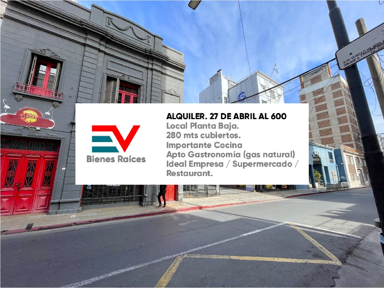 EXCEPCIONAL LOCAL EN ALQUILER, ESTRATEGICAMENTE UBICADO EN EL CENTRO DE CORDOBA CAPITAL A MTS DE LA MUNICIPALIDAD, PASEO SOBREMONTE Y CAÑADA, SOBRE CALLE 27 DE ABRIL ENTRE ARTURO M BAS Y CORRO CARACTERISTICAS LOCAL COMERCIAL DE 300 MTS CUBIERTOS AMPLIO SALON COMERCIAL COCINA GRANDE (APTO GASTRONOMIA, TIENE GAS NATURAL) BAÑOS VARIOS PATIO CONTIGUO AL SALON COMERCIAL PEQUEÑO PATIO DE VENTILACION AL FONDO IDEAL PARA BAR / RESTAURANT / EMPRESA CONSULTE EV BIENES RAICES